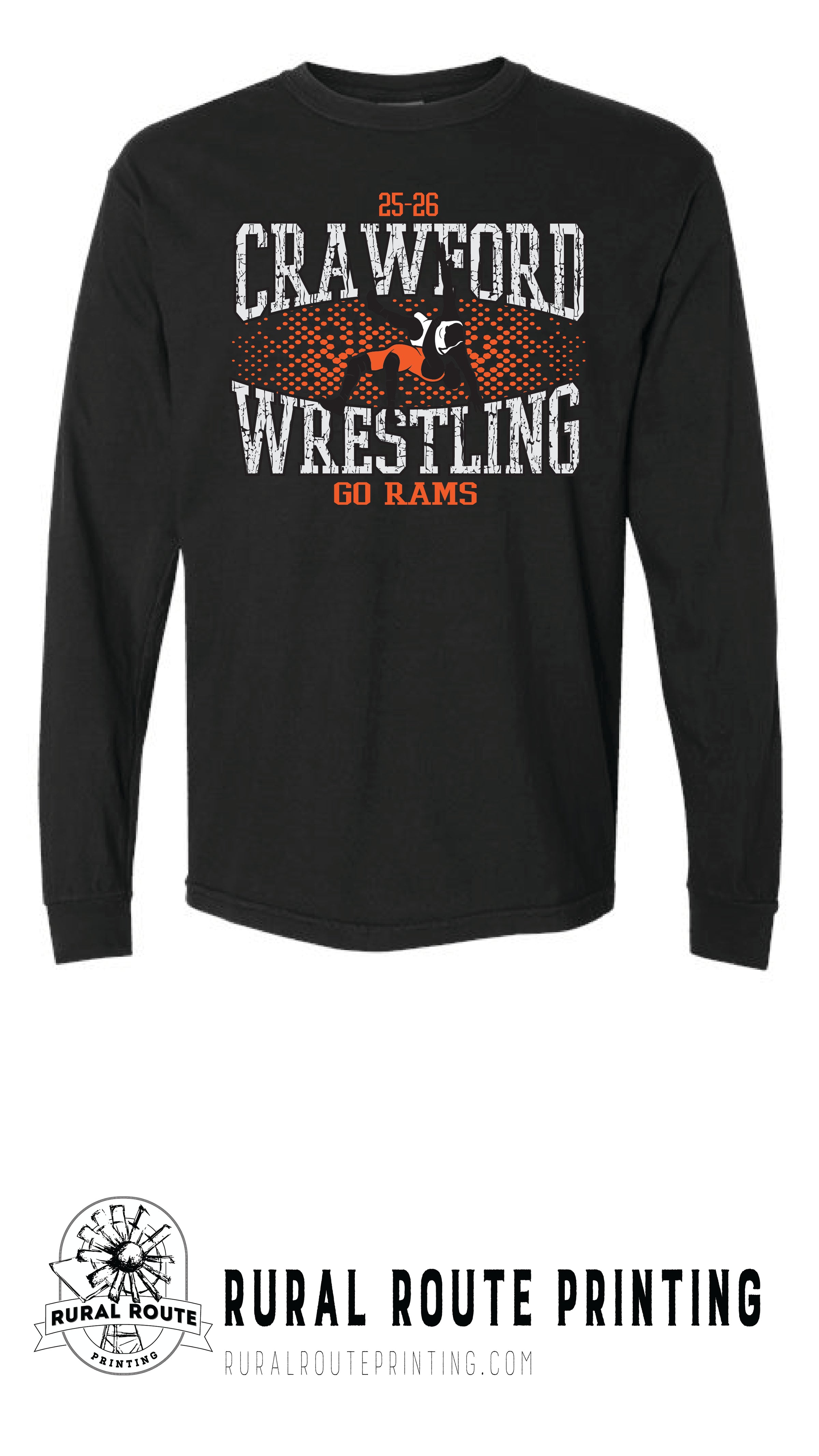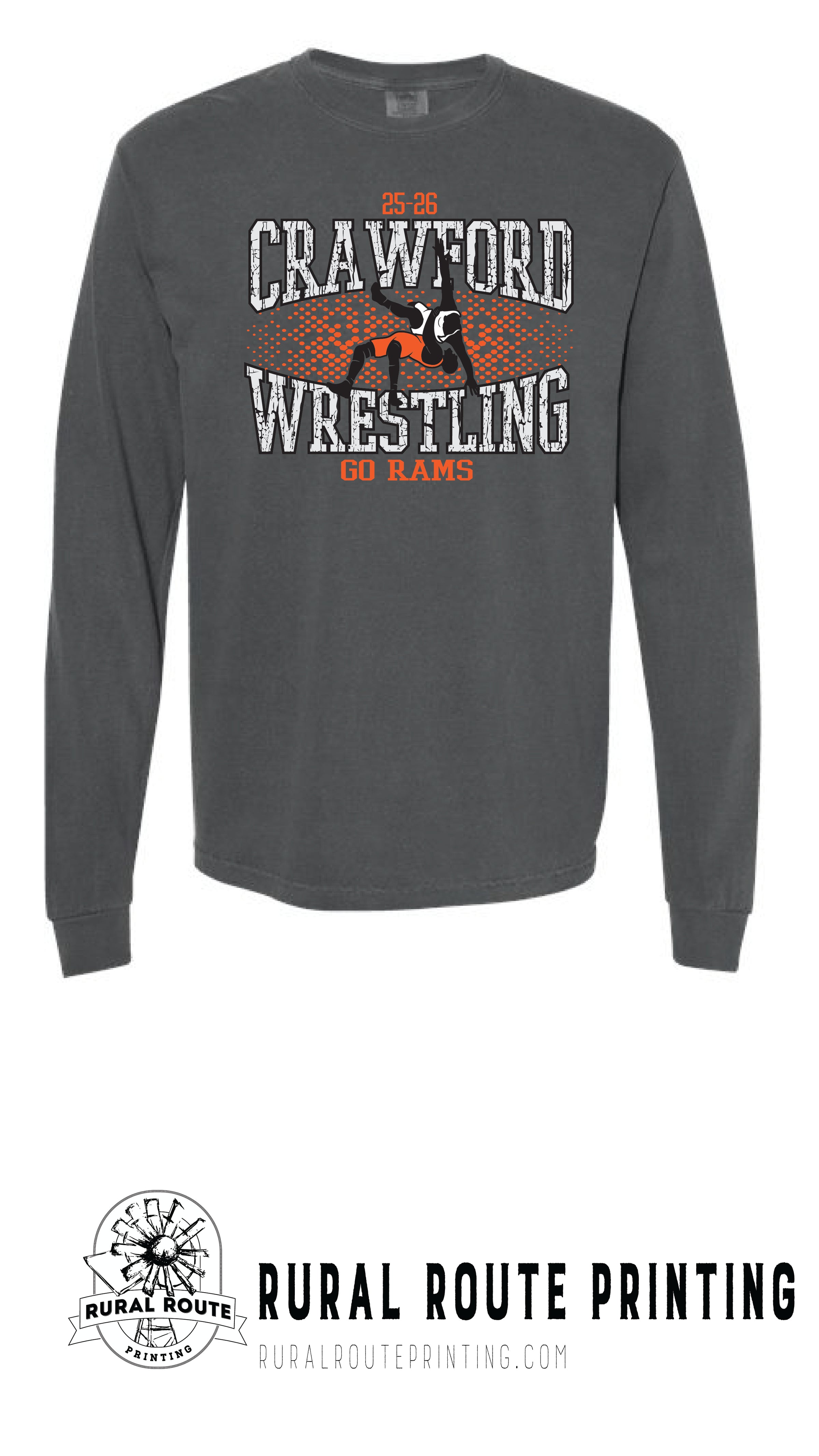 Crawford Wrestling -Shattered - Comfort Color Heavy Long Sleeve Tee (6014)